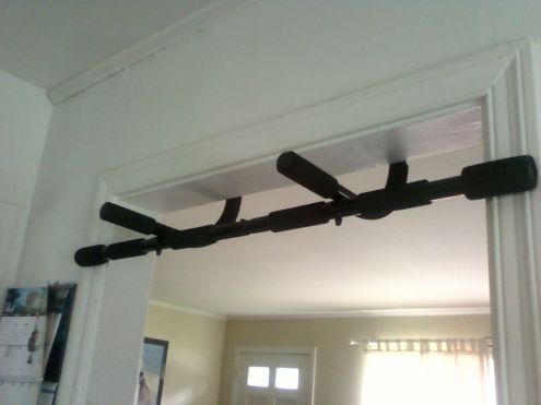 Day 8…Chest, Back, Ab Ripper again….but this time I am prepared. I have a pull-up bar for the door and push up bars for the floor. I can do ZERO pull-ups using only my arms. I can do about five with the “chair” help. Push ups…are getting up to like 10 at a time now (on my knees…but Tony says that’s cool…get to 25 on the knees and move it to the toes)