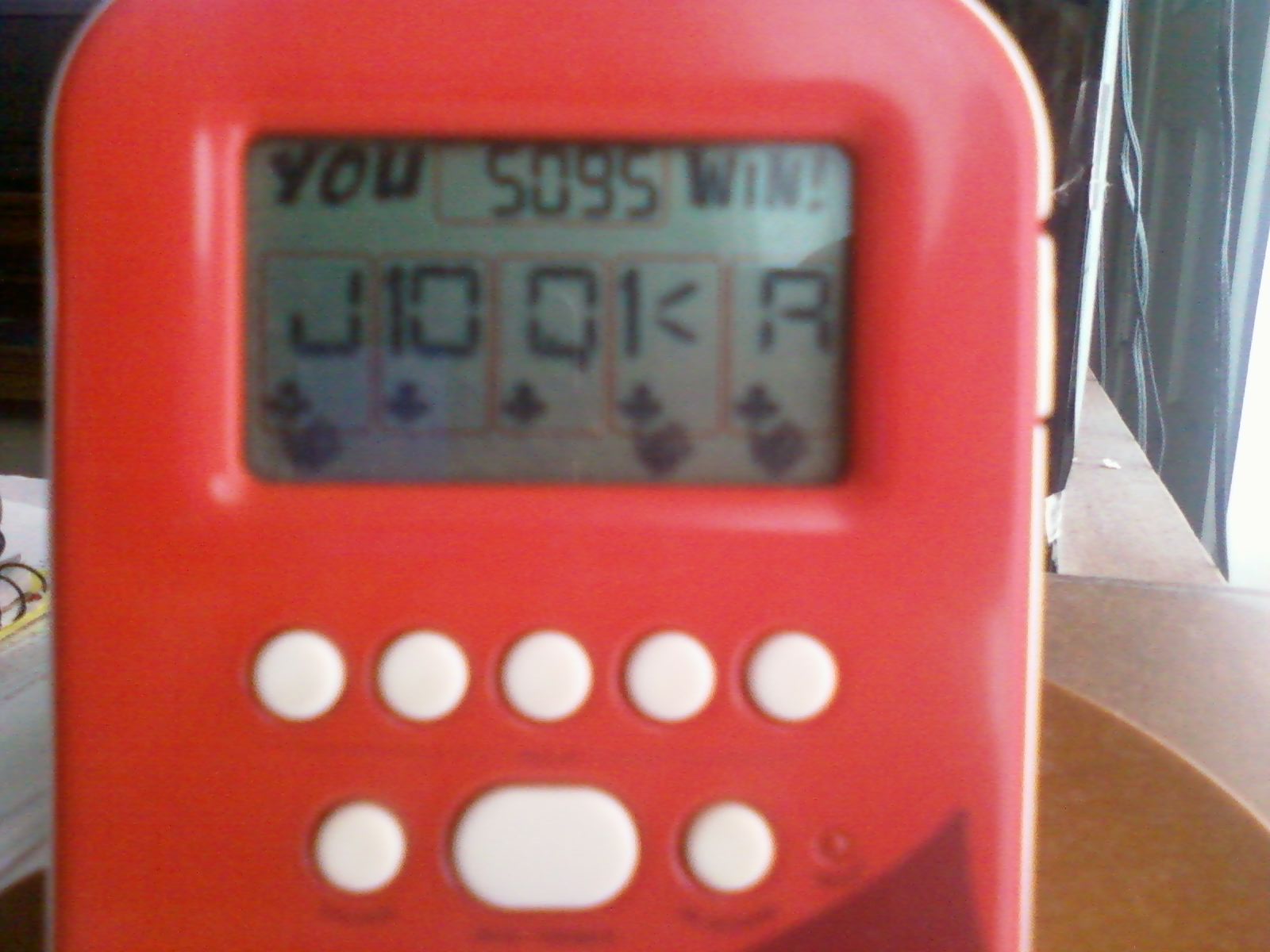 Oh yeah! No kidding. I think it was clubs. I got it awhile ago but saved the pic for just this moment. I am a wild woman! Do not mess with me and my mad fake poker points skillz! The back of the game says I get 2500 points for the royal flush but I got 5000! What?? I know! It was an exciting day! And just when I did not think it could ever happen again….IT DID!!