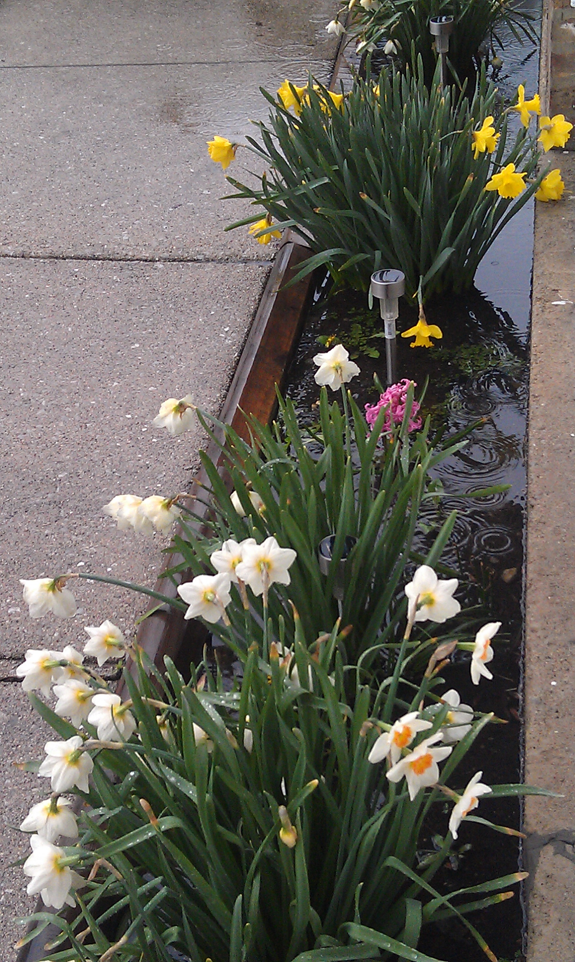 I could also call it: We Pay For Spring In This City. 24 hours of rainfall. Really. I drove home last night through many flooded areas. Standing water up past the bottom of my car. It’s the deepest water I have ever driven through in a car. I was scared. But if you just keep going and don’t stop you have a fighting chance. Besides I could see ahead from 2 other cars that attempted it, how deep it really was. They gave up and turned out of it. Not me. Now I know why people get stuck. I did the same damn thing, and thought the same damn thing, “Pshh. I can make it.” I luckily did. There was even a police officer sitting off to the side in a parking lot watching all of us idiots trying to go through, probably just waiting for someone to get stuck and then he could shut the intersection down. Anyway, it’s still raining, and I hear worse weather is on the way. My daughters school just called to say they’ve canceled all after-school activities due to the impending weather predicted. I think I heard tornadoes and what not. I guess we are going to find out.