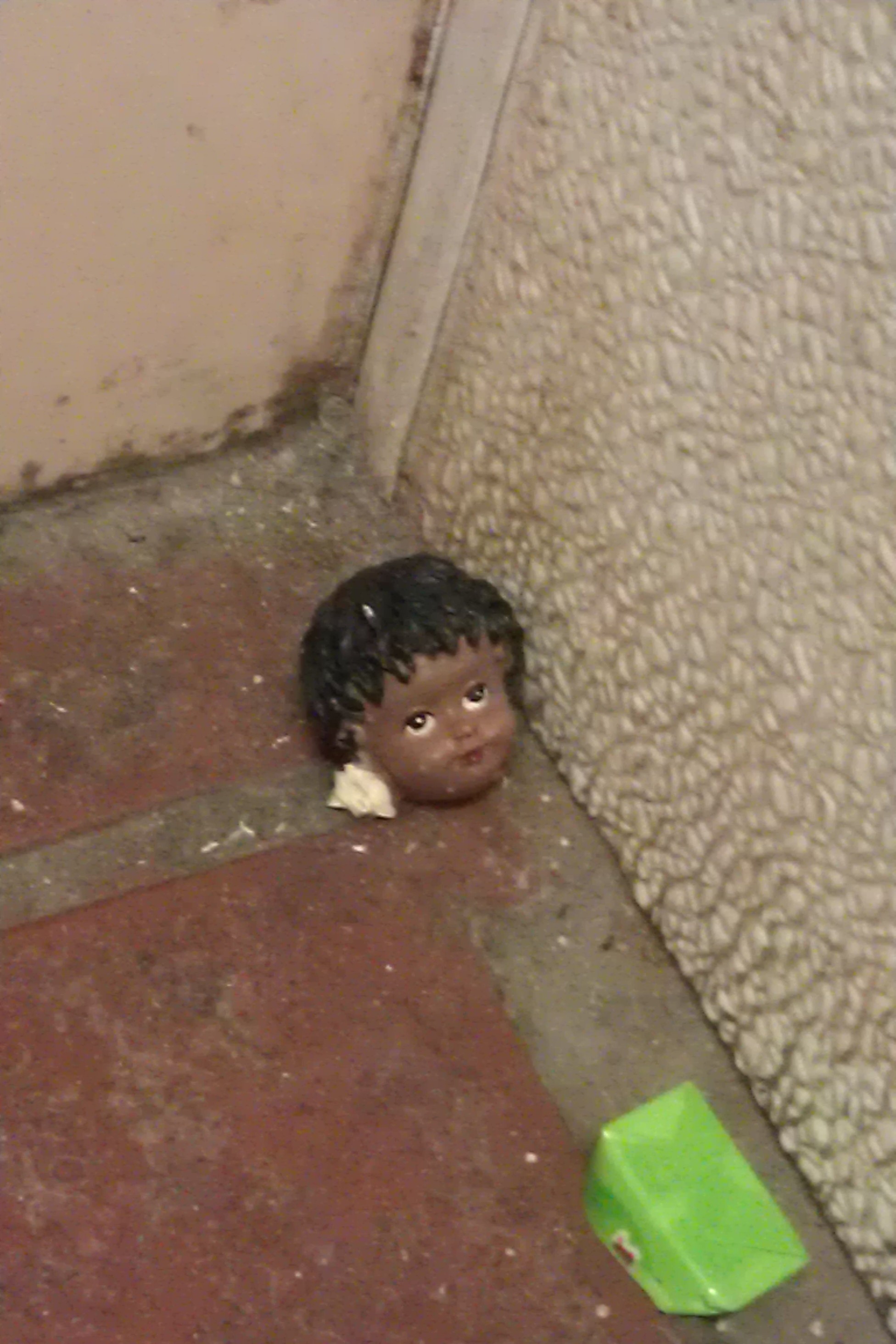 Why not make it the most disturbing picture I took all week. I call it: Baby Head In Corner. Third day, out of four, in a row, at work. Late nights. Saw this as I was leaving. Hesitated, but took the picture. Showed anyone I saw on the way out and everyone agreed it was creepy. Some even went to go see it for themselves, as if I would lie about its placement and location. It is kind of frightening if you stare at it too long. And there is no logical reason why something like that would be where it was. It was gone the next day. Is there any lesson here? Or bigger message? Occasionally look down? Sometimes, don’t be afraid to peer into the corners? Ask why? Or at the very least, take a picture. For proof. Later.
