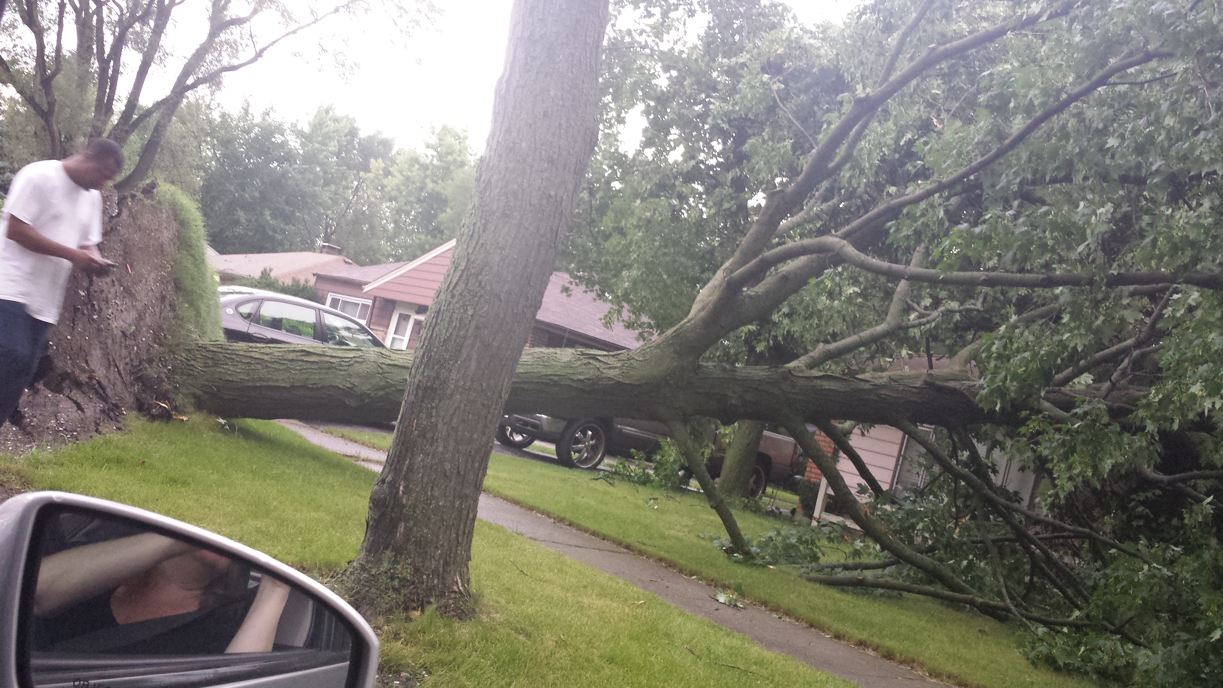 So naturally, I was complaining, and all geared up to bemoan fate and nature and all that, until I took a little drive out into the world to go get dinner. This is what happened to our neighbors down the street: