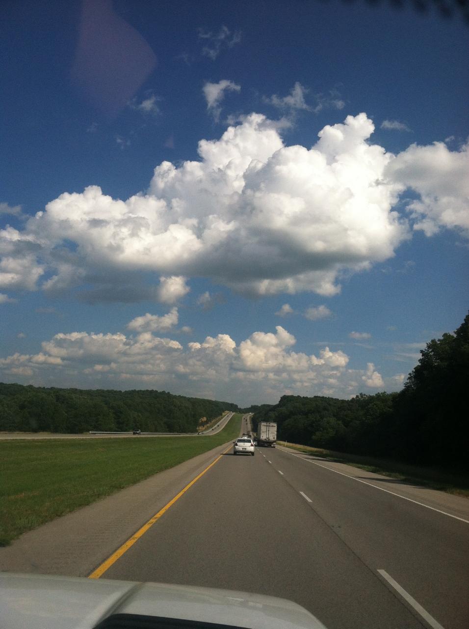 The girl takes good pictures. I almost feel bad that while the kids are driving through weather and tornadoes, me and the BF are at the liquor store buying all kinds of alcohol for the BBQ we are going to later, and then something for the rest of the weekend. Without children. Eh. Life. I took equally stunning pictures of the new wines I just bought to try out, and then later, post and share my opinions with you, good people. Let me end this with the last two pictures she sent me, because they are also really good, and she knows that I LOVE pictures of the sky and clouds. And you probably, secretly, like them too or you wouldn’t have kept reading! It’s OK. I thank you! Thank you thank you every day! It’s a peculiar world, this blogging, internet place; big and diverse, the way I like most things, but still managing to feel close and intimate, like we are all sharing this life through our words and images, the way we are taught that we could, if we lived in an ideal world. Hmm. Not one drop to drink yet, I swear it. Anyway, the sky…I’ll take the pics (or my daughter will), and you can look and move on. No one ever has to know. But we’ll know. Here is the first, with her comment, also word for word, “Look at that fat ass cloud.”:
