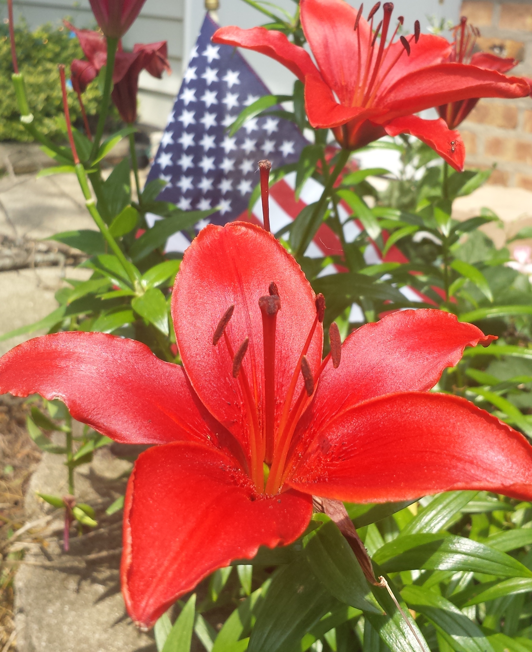 Ya gotta click the above link to hear and see the video because I can’t figure out how to get it to just show. What’s a holiday without a little bit of work? It’s 2 minutes and it’s kids singing the Star Spangled Banner. It might water your eyes if you happen to be a mushball for the kiddies like I am. And there’s a flower picture, kinda patriotically staged for you to enjoy while sipping on a beer and blowing off the fireworks later. Me and the BF have a funeral and a BBQ to go to right now. Death and life all in the same day. But that’s every day isn’t it? Be safe.