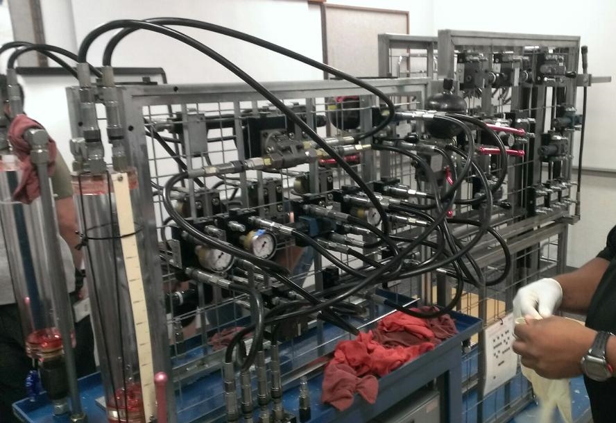 Does it look fun like this? I bet it doesn’t. This is the BF’s job. He works for Bosch-Rexroth. You can look that up for yourself if you want more info because I am not even going to try. The sub heading for his company is “The Drive & Control Company”. Now that does sound pretty cool right? Here are some words I will throw out and then end this post: Engineering. Hydraulics. Automation. Pneumatics. Linear Motion Technology. Tightening Technology. Advanced Motion Control. Motors. Pumps. You get the idea. Say them slow enough and you have one sexy afternoon hanging out with all men in a manufacturing wet dream. But you decide for yourself. At any rate, there are a lot of IQ points flying around that room. Multiple equations are being calculated. Several theories are being tested. Many high-tech-super-spy-gadget wristwatches are being compared. It’s an above average sausage fest for sure. Can I type that? I mean it in the best possible way. Sorry if it seems crude. I got home late from work last night, 2:30 AM, and got up early with the boy because of football at 7 AM. And then I just stayed up to get more house type things done before work again today. As you can read, I am really using that time wisely. I should be folding laundry or cleaning or something. Boring. I also might be a little lightheaded from lack of sleep. Let me keep posting all my fun daily activities though just to be sure. Here’s another picture of the whole system, with men gesturing and calculating on clipboards, using more brainpower in this one shot than I will use all day. Everyone say, “Quantum Physics!”