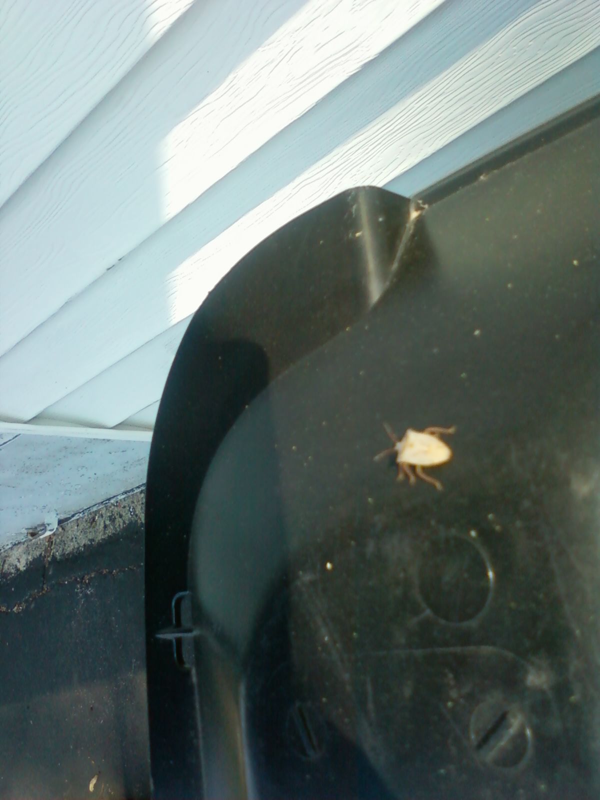 And it’s a crappy pic to boot. But I was so surprised and shocked that I had to hurry and take it with the phone. I have never in my whole life seen one in person. Weird right? And there it was just sitting on the garbage can. I only know what it is because the kids are always talking about them and their shield shape. And there it is! And you thought this was going to be just another lame ass Friday. As I was trying to take its photograph it started walking away from me so I got one more pic and it picked up and flew away. And I haven’t seen another one since?