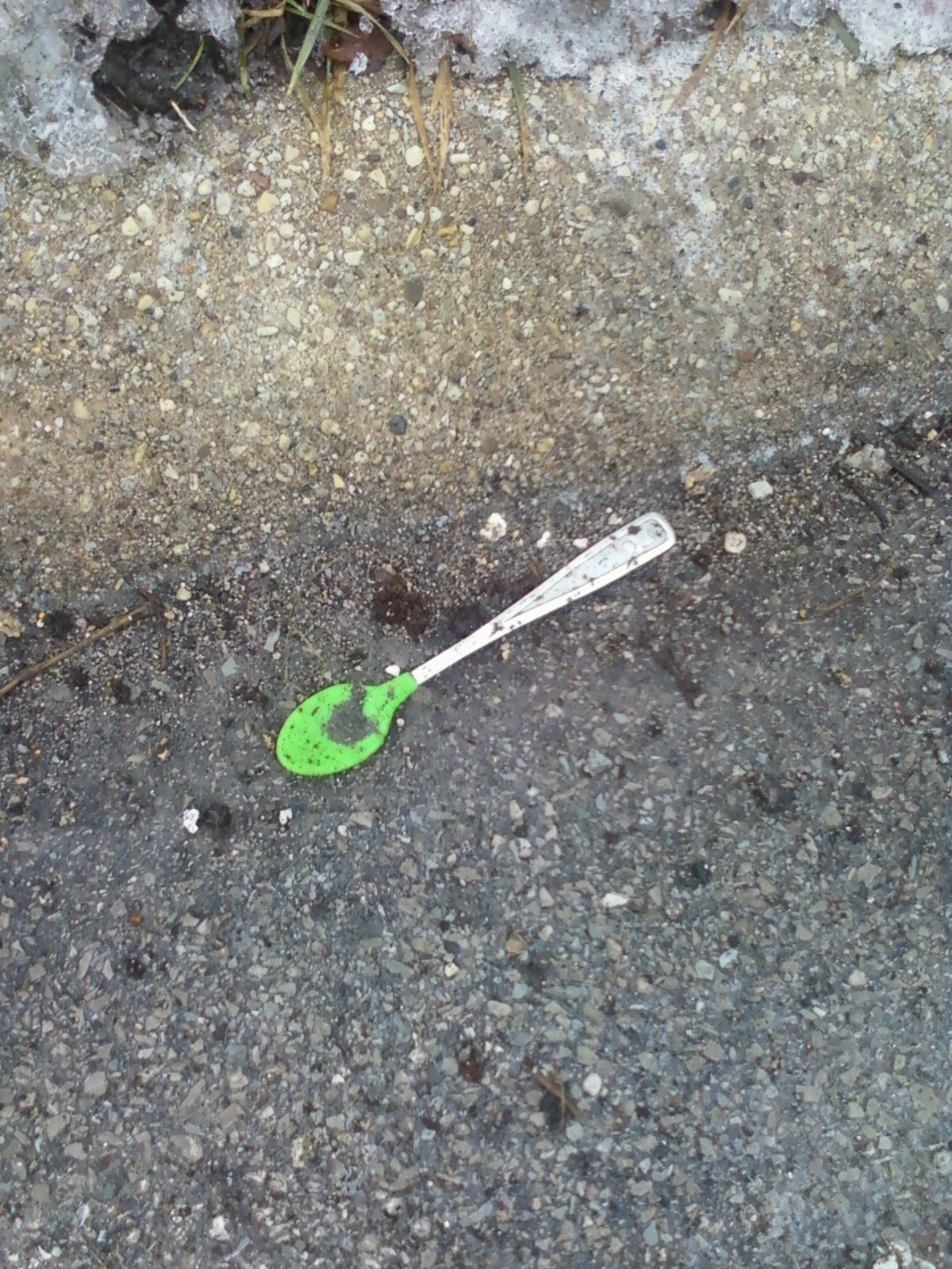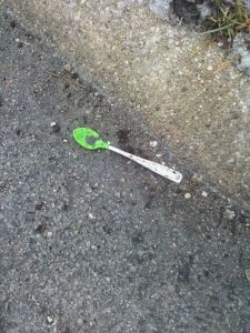 Obviously I have nothing better to do. But, as I was walking my daughter to school for the first time in a few weeks…there it was. Another spoon!