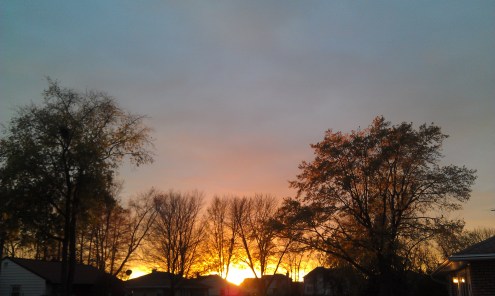Lots of noise. A strange, continuous roaring sound to the north of our location. Sirens everywhere. No actual sighting in my town. Confirmed visuals in Coal City to the South and Frankfort to the west. And as everyone knows by now, Washington, IL, out in the middle there. It is VERY windy now. If you turn on the TV to the Bears game in Chicago, you can see that our wind is extra windy. In case we forgot that our weather patterns here in the Midwest don’t just stroll in all leisurely-like, changing over the course of a few days or even hours; but prefer to burst out of the atmosphere like fireworks in the sky. Boom, flash, done. It’s dark. It’s light. It’s dark again. One minute you are outside just milling around and taking pictures, marveling at nature in all its raw beauty, and the next minute a powerful gust of wind crackles through the high branches of your fragile, breaking trees, pushing you, the garbage cans, and one of the plastic chairs you are standing next to, across the patio, almost giving you a heart attack. I literally covered my head because I thought a limb was coming down. I know the sound. So you decide you should probably go inside and close all the windows because it was 65 degrees mere minutes ago and now its 50 with all your blinds blowing inside the windows trying to come off the hinges. I have work to start and finish because I wasted my day on all this weather and I may slip in a drink or two to count my blessings tonight with my family. Say a quick prayer, send a thought, or help if you can, for our neighbors to the south. It’s getting dark now and the weather looks like it’s staying. Good luck. Stay safe. Winter is pretty much here. Only four or five more months until it’s spring. Cold hands, warm hearts. I think we say something like that. Later.