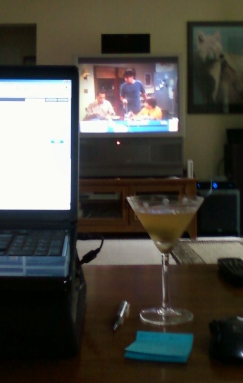 Anyway…long weekend, kids are gone (camping with their dad), no school, nothing to study, it’s getting dark, kind of cool outside, the BF is trying to find us a cheap flight to Vegas, we’re watching 2½ Men on TV, drinking martini’s and playing my favorite game–we drink when Charlie drinks–, and I’m posting about it!